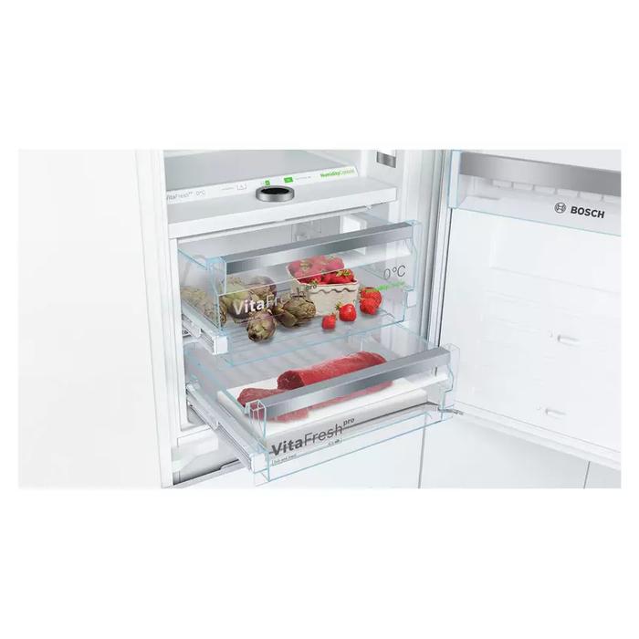 Feature IconAvec VitaFresh pro, les températures de rangement pour le poisson, la viande, les produits laitiers, les fruits et les légumes peuvent être réglés précisément: pour les garder fraîches pendant une période beaucoup plus longue. Il y a également un tiroir ultrasec pour les poissons et la viande qui garantit une fraîcheur extrêmement longue. L’humidité idéale peut facilement être établie . Vous n’avez qu’à sélectionner l’un des trois réglages pour les fruits, les légumes ou le contenu mixte.